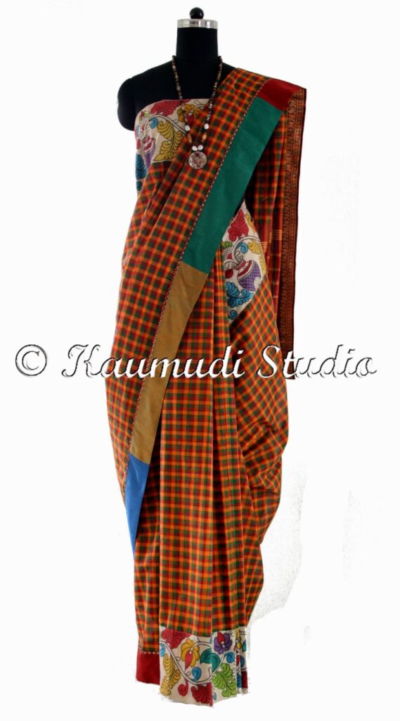 Madras checks came a long way from cotton in plaids to a fabric which is now made in rayon, silk, linen and even polyester and their blends. “Striped in Design”, checks or plaids.  From natural dyes to chemical bleeding dyes to colorfast colours, it has made a full circle “Stripped of Chemicals” back to the natural colours supporting the Slow Movement in good earth practices. Historically Madras checks from Madras now Madras checks is being made us in Natural dyes. Way to go in Handloom.